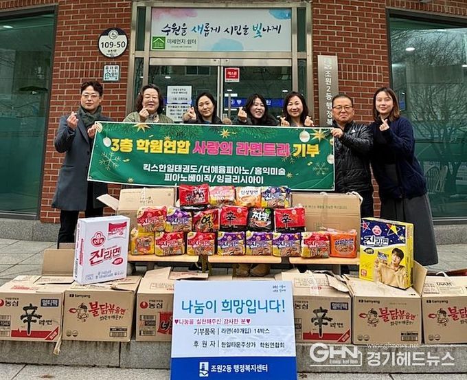 경기헤드뉴스 권준형 기자 | 수원시 장안구 조원2동은 지난 24일 관내 한일타운주상가 학원 연합회로부터 어려운 이웃을 위한 라면 40개입 14박스를 기탁받았다고 전했다.