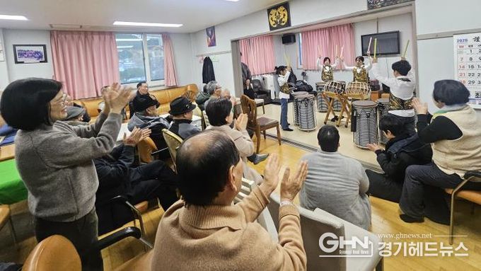 경기헤드뉴스 권준형 기자 | 지난 24일, 수원특례시 영통구 매탄1동은 매탄1동지역사회보장협의체와 함께 현대힐스테이트경로당 자매결연 행사로 The꿈 지역아동센터 아동들이 준비한 난타공연을 선보였다.