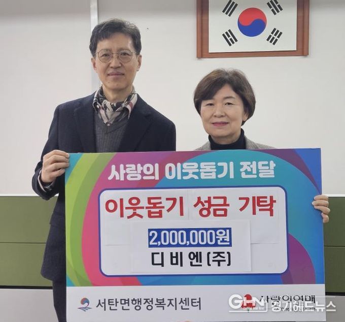 경기헤드뉴스 임수연 기자 | 평택시 서탄면 수월암리에 있는 디비엔(주)에서 지난 24일 서탄면을 찾아 지역사회복지증진을 위해 200만 원의 지정기탁 기부금을 전달했다.