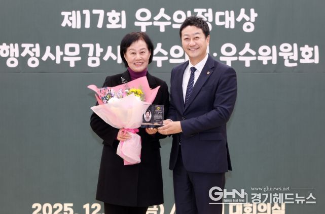 경기헤드뉴스 성미연 기자 | 경기도의회 박명숙 의원(국민의힘, 양평1)은 26일 경기도의회 대회의실에서 열린 의원종무식에서 2025년대 행정사무감사 우수의원상을 수상했다.