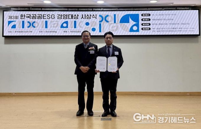 경기헤드뉴스 성미연 기자 | 경기주택도시공사(GH)는 30일, 서울 여의도 국회의원회관에서 열린 ‘제3회 한국공공ESG경영대상’에서 K-ESG 이행평가 부문 지방공기업 유형 대상을 수상했다고 밝혔다.