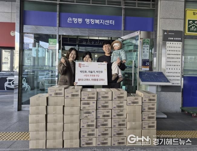 경기헤드뉴스 임채헌 기자 | 시흥시 은행동 행정복지센터에 지난 12월 30일 한 부부가 세 살 자녀와 함께 방문해 관내 영유아와 청소년을 위한 물티슈 및 위생용품 50상자를 기탁했다.