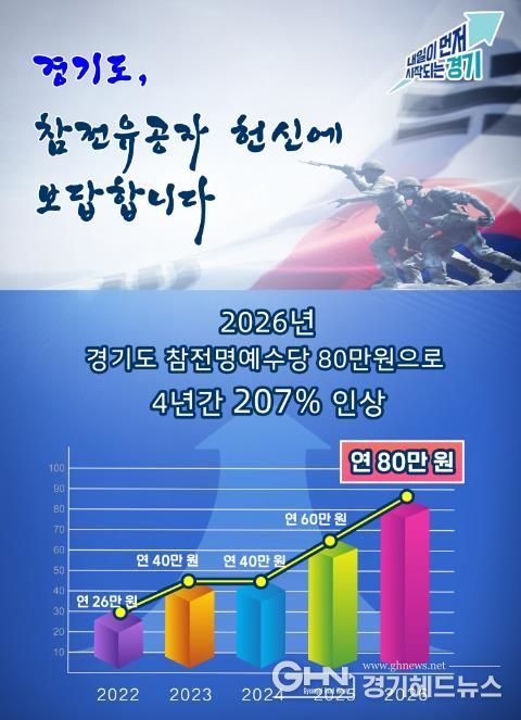경기헤드뉴스 성미연 기자 | 경기도가 참전유공자에 대한 예우를 강화하기 위해 2026년 경기도 참전명예수당을 연 80만 원으로 인상했다.