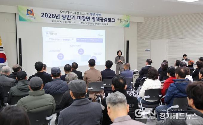 경기헤드뉴스 이현규 기자 | 안성시 미양면은 지난 1월 15일, 미양면행정복지센터 대회의실에서 주민 120여 명이 참석한 가운데 ‘2026년 상반기 미양면 정책공감토크’를 성황리에 개최했다.