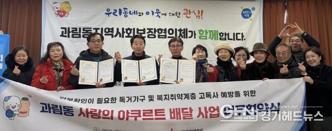 경기헤드뉴스 임채헌 기자 | 시흥시 과림동 지역사회보장협의체는 지난 1월 19일 ㈜한국야쿠르트 역곡점과 복지 취약계층 안부 확인을 위한 ‘사랑의 요구르트 배달’ 사업 추진 업무협약을 체결했다.
