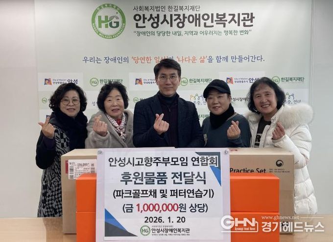경기헤드뉴스 이현규 기자 | 안성시장애인복지관은 지난 1월 20일, 안성시고향주부모임연합회로부터 100만원 상당 파크골프채 및 퍼터연습기를 기탁받았다고 밝혔다.