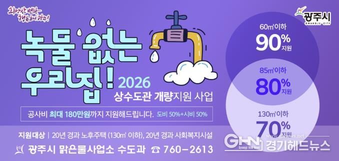 경기헤드뉴스 권민성 기자 | 광주시는 깨끗하고 안전한 수돗물 공급을 위해 ‘녹물 없는 우리 집 수도관 개량 지원사업’을 추진한다고 23일 밝혔다.