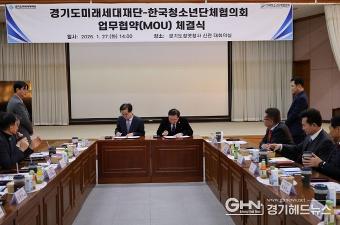 경기헤드뉴스 성미연 기자 | 경기도미래세대재단은 27일 수원시 팔달구 옛 경기도청사에서 한국청소년단체협의회와 청소년의 건강한 성장과 글로벌 역량 강화를 위한 업무협약을 체결했다.