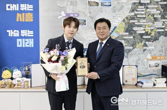 경기헤드뉴스 임채헌 기자 | 시흥시는 인기 경연 프로그램 ‘미스터트롯2’ 출신 가수 진욱을 시흥시 명예문화홍보대사로 위촉하고, 1월 28일 시장실에서 위촉장을 전달했다.