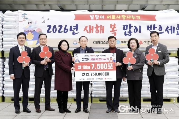 재단법인 에이스경암은 2월 5일 성남시에 2억1375만원 상당의 쌀 7500포대(10㎏ 들이)를 기탁했다.