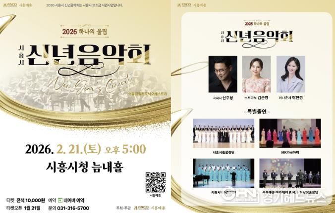 경기헤드뉴스 임채헌 기자 | 시흥시가 지원하고 (사)한국예술문화단체총연합회 시흥지회에서 주관하는 ‘2026 시흥시 신년음악회- 하나의 울림’이 오는 2월 21일 오후 5시, 시청 늠내홀에서 개최된다.