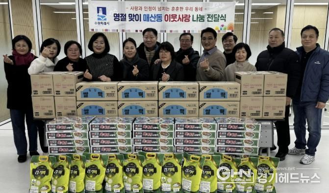 경기헤드뉴스 권준형 기자 | 지난 6일, 수원시 팔달구 매산동 단체장협의회는 설 명절을 앞두고 매산동 행정복지센터를 방문해 취약계층 지원을 위한 기부금과 먹거리 물품을 전달하며 이웃돕기 활동을 펼쳤다.
