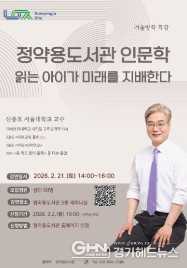 경기헤드뉴스 권민성 기자 | 남양주시는 오는 2월 21일 정약용도서관 3층 세미나실에서 겨울방학 인문학 특강 ‘읽는 아이가 미래를 지배한다’를 개최한다고 9일 밝혔다.