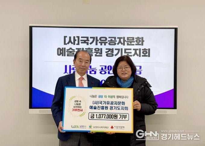 경기헤드뉴스 권민성 기자 | 남양주시는 지난 10일 (사)국가유공자문화예술진흥원 경기도지회가 지역 내 어려운 이웃을 돕기 위해 사랑 나눔 공연 수익금 107만 원을 남양주시복지재단에 기부했다고 11일 밝혔다.