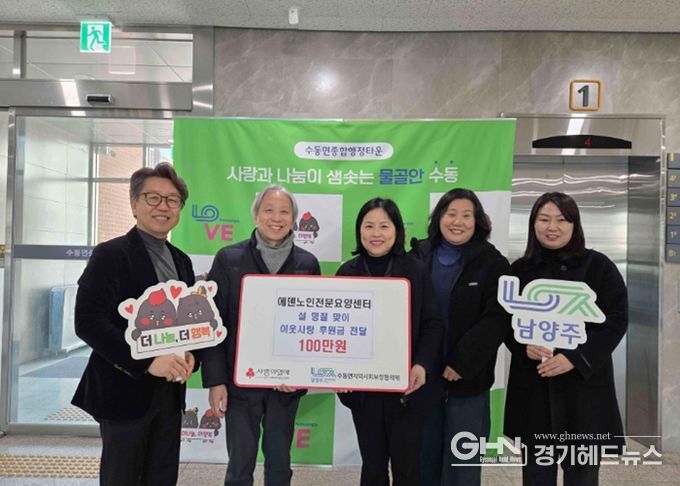 경기헤드뉴스 권민성 기자 | 남양주시는 지난 9일 수동면 에덴노인전문요양센터가 설 명절을 맞아 어려운 이웃을 위한 후원금 100만 원을 수동면 지역사회보장협의체에 지정기탁했다고 11일 밝혔다.