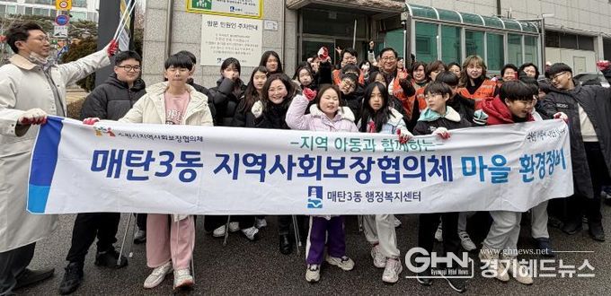 경기헤드뉴스 권준형 기자 | 영통구 매탄3동은 지난 11일 지역사회보장협의체, 지역아동복지센터, 관계 공무원 등 40여 명이 참여해 환경 정비 활동을 실시했다.