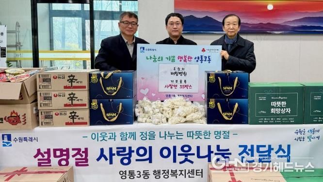 김인태 영통3동장은 “설 명절을 맞아 관내 취약계층을 위한 후원에 감사드리며, 기탁된 물품은 어려운 이웃에게 잘 전달하겠다”고 전했다.