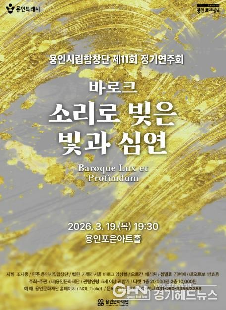 경기헤드뉴스 성미연 기자 | 용인문화재단은 오는 3월 19일 오후 7시 30분, 포은아트홀에서 용인시립합창단 제11회 정기연주회 '바로크 – 소리로 빚은 빛과 심연'을 개최한다.