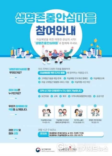 경기헤드뉴스 임수연 기자 | 화성특례시가 자살 예방과 정신건강 증진을 위해 ‘생명존중 안심마을’을 확대 운영하고 사업에 함께할 지역사회 기관·단체를 모집한다고 밝혔다.