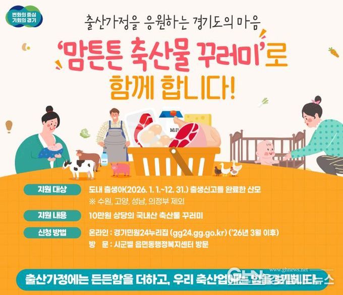 경기헤드뉴스 성미연 기자 | 경기도는 도내 27개 시군과 함께 ‘2026년도 맘튼튼 축산물꾸러미 지원사업’을 오는 3월부터 추진한다.