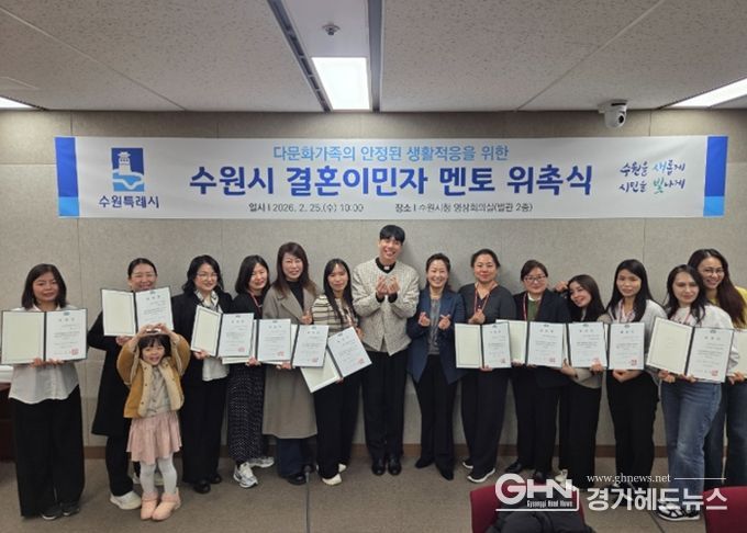경기헤드뉴스 권준형 기자 | 수원특례시가 25일 시청 영상회의실에서 ‘2026년 결혼이민자 멘토 위촉식’을 열고 선배 이민자 멘토 15명을 위촉했다.