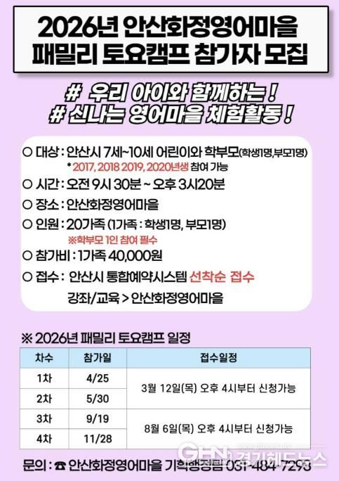 민진영 안산화정영어마을 원장(안산대학교 교양학부 교수)은 “패밀리 토요캠프는 가족이 함께 배우고 성장하는 경험에 의미를 두고 기획했다”며 “아이들이 말하기 중심 체험을 통해 영어 자신감을 키우고, 가정과 지역사회가 연계된 학습 환경 속에서 지속적으로 영어를 접할 수 있는 기반이 되길 바란다”고 말했다.