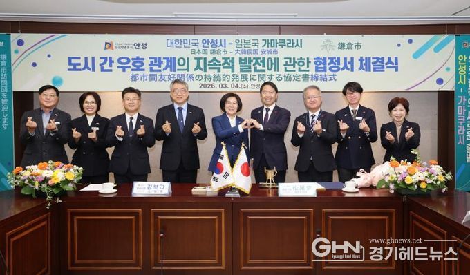 경기헤드뉴스 이현규 기자 | 안성시는 2026년 3월 4일 오전 11시 안성시청 본관 2층 상황실에서 일본 가나가와현 가마쿠라시(시장 마쓰오 다카시)와 '도시 간 우호 관계의 지속적 발전에 대한 협정'을 체결하고 양 도시 간 문화·예술 및 청소년 분야 교류를 본격 추진하기로 했다.