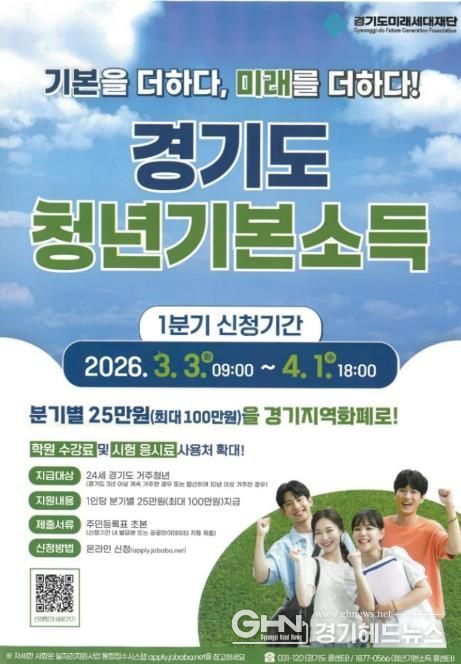 경기헤드뉴스 임수연 기자 | 오산시는 24세 청년에게 분기별 25만 원을 지급하는 ‘청년기본소득’ 2026년 1분기 신청을 3월 3일부터 4월 1일까지 접수한다고 밝혔다.