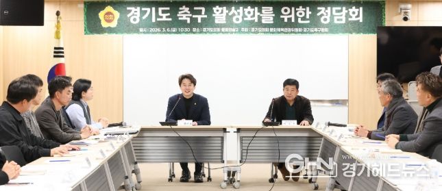 경기헤드뉴스 성미연 기자 | 경기도의회 문화체육관광위원회 황대호 위원장(더불어민주당, 수원3)이 6일 경기도축구협회 이석재 회장을 비롯한 협회 관계자들 및 도내 소재 초중고 및 클럽 학생 축구팀 감독들과 경기도 학생 축구선수 지원 정담회를 가졌다. 정담회는 경기도축구협회 측에서 경기도 축구 활성화와 학생 축구선수 지원 활성화를 위한 정책 제안을 청취하고 실질적 지원 방안을 마련하기 위해 진행됐다.