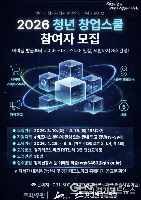 경기헤드뉴스 임채헌 기자 | 안산시는 e비즈니스 분야 청년 창업자의 안정적인 시장 진입과 사업 운영을 지원하기 위해 ‘청년 창업스쿨’ 참여자를 모집한다고 10일 밝혔다.