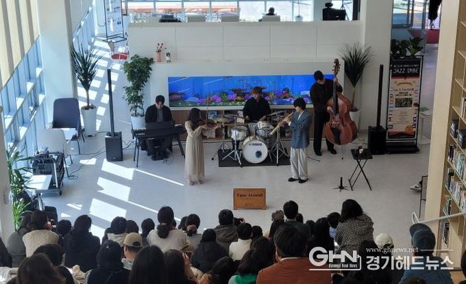 경기헤드뉴스 임수연 기자 | 오산시는 지난 7일 청학도서관 1층 커뮤니티스테어에서 열린 재개관 기념 공연 ‘2026 음악이 흐르는 도서관 콘서트 – 재즈&북(Book)의 향연: JAZZ VIBE’가 시민들의 큰 호응 속에 성황리에 마무리됐다고 밝혔다.
