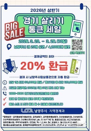 경기도와 경기도시장상권진흥원이 주관하고 남양주시가 함께 추진하는 이번 행사에는 관내 권역별 주요 20개 전통시장과 골목상권 내 소상공인 4,200여 개 점포가 대거 참여해 시민들에게 실질적인 할인 혜택을 제공한다.