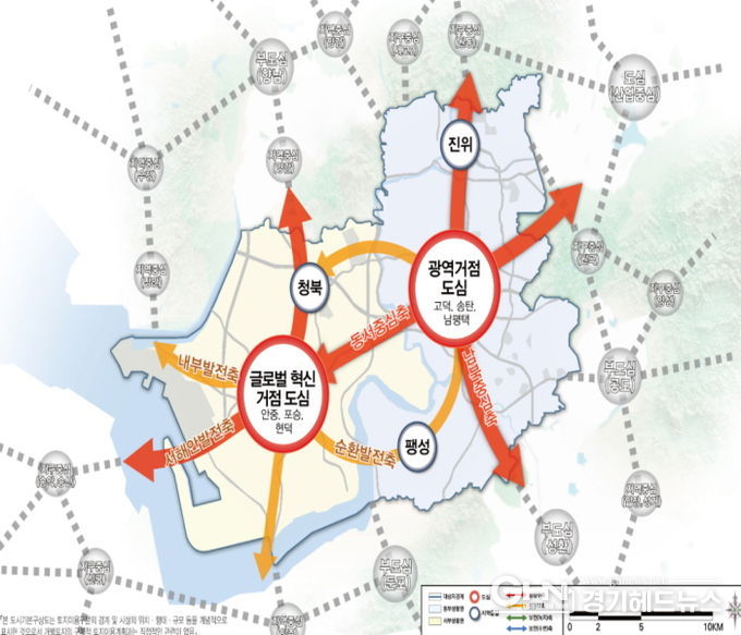 생활권은 크게 동부와 서부 2개 권역으로 나눴다. 동부생활권은 미래산업인 반도체 특화단지와 산·학·연 클러스터(산업집적단지) 육성에 집중한다. 서부생활권은 친환경 수소 에너지 특화단지와 항만·산업도시 구현을 핵심 발전 전략으로 제시했다.