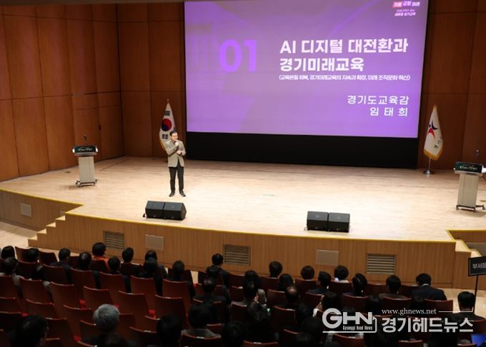 주요 순서는 ▲인공지능(AI) 디지털 대전환과 경기미래교육 주제 발표(교육의 본질회복, 경기미래교육의 지속과 확장, 미래조직문화 혁신) ▲인공지능(AI) 전환 시대에 따른 교육정책 방향 제시 ▲경기교육 디지털 플랫폼 ‘지원이(G-ONE)’ 안내 등으로 진행했다.