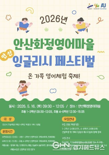 경기헤드뉴스 임채헌 기자 | 안산시가 설립하고 안산대학교가 운영하는 안산화정영어마을은 ‘온 가족 영어체험 축제!’를 주제로 ‘안산 잉글리시 페스티벌’을 운영한다고 24일 밝혔다.