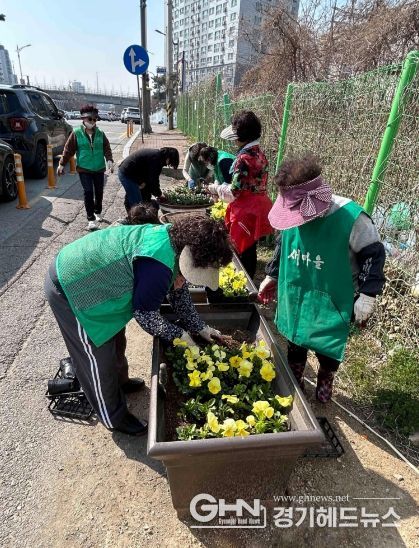 경기헤드뉴스 이현규 기자 | 평택시 신장2동 행정복지센터는 지난 23일 새마을부녀회 회원과 동 직원 등 30여 명이 참여한 가운데, 관내 주요 도로변 및 도시재생구역 일대에 봄꽃 심기 작업을 했다고 밝혔다.