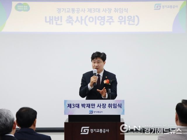 경기헤드뉴스 성미연 기자 | 경기도의회 건설교통위원회 이영주 의원(국민의힘, 양주1)은 지난 3월 27일 경기교통공사 3층 교육장에서 열린 ‘경기도 광역이동지원센터 콜센터 KS 서비스 인증 현판식’ 및 ‘제3대 사장 취임식’에 참석해 박재만 사장의 취임을 축하하고, 경기교통공사의 역할과 향후 발전 방향에 대해 의미 있는 메시지를 전했다.