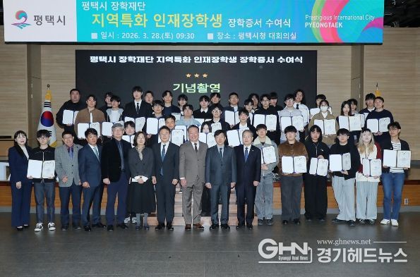 경기헤드뉴스 이현규 기자 | 평택시 장학재단은 지난 3월 28일 평택시청 대회의실에서 '2026년도 지역특화 인재 장학생 장학증서 수여식'을 개최했다.