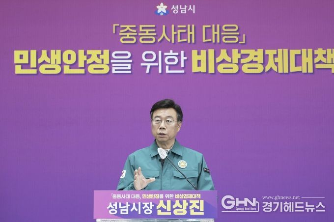 신상진 성남시장은 이날 오전 11시 시청 모란관에서 중동사태 대응 민생안정을 위한 비상경제 대책 기자회견을 열고 “중동 사태로 인한 서민 경제 부담을 완화하고, 지방정부가 앞장서 지원에 나설 수 있도록 중앙정부가 역할을 다해주기를 바란다”며 국가 재난 선포 필요성을 강조했다.