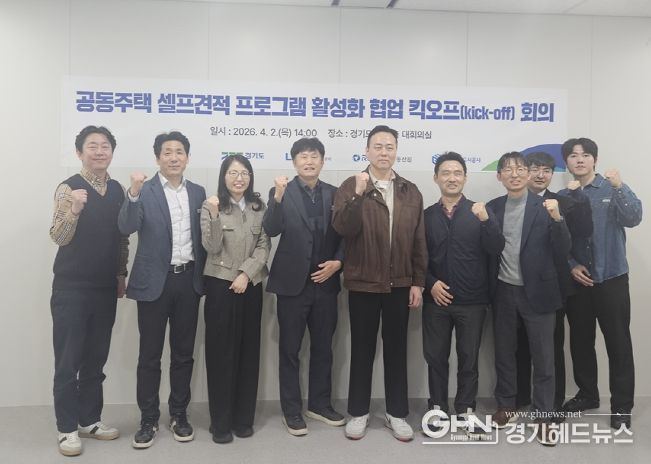경기도는 4월 2일 경기도청에서 중앙공동주택관리지원센터(한국토지주택공사/LH), K-apt(한국부동산원), 경기주택도시공사(GH) 실무자들이 참석한 가운데 ‘공동주택 셀프견적 프로그램 활성화 협업 킥오프(Kick-off) 회의’를 개최했다.