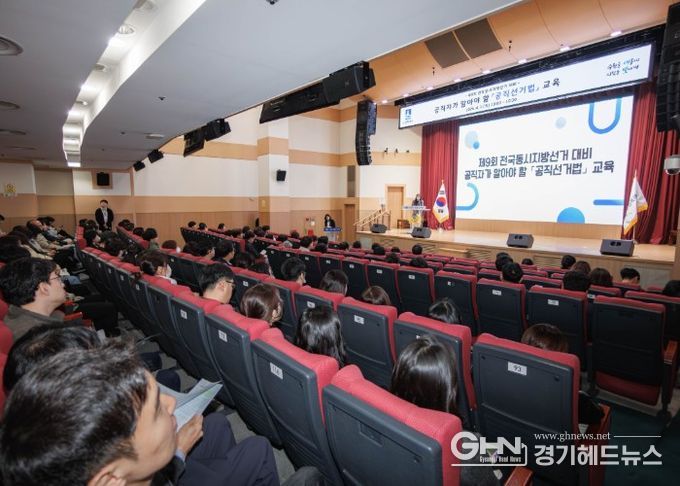 수원시가 2일 시청 대강당에서 ‘제9회 전국동시지방선거 대비 공직자가 알아야 할 공직선거법 교육’을 열었다. 송하경 팔달구 선거관리위원회 지도계장이 공직자들이 자주 묻는 내용을 중심으로 공직선거법을 설명했다.