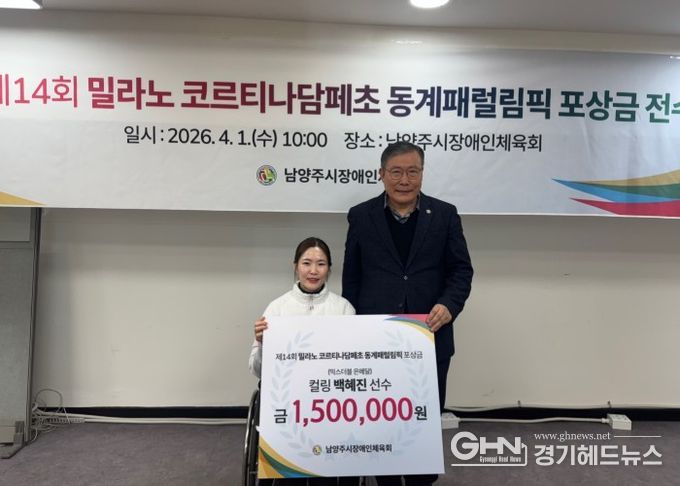 경기헤드뉴스 권민성 기자 | 남양주시는 지난 1일 남양주시장애인체육회가 제14회 밀라노-코르티나담페초 동계패럴림픽 휠체어컬링 믹스더블 종목 은메달리스트 백혜진 선수에게 포상금을 전달하고 성과를 격려했다고 2일 밝혔다.