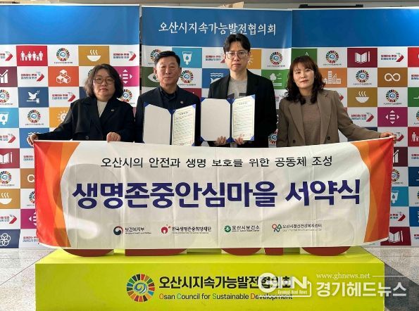 경기헤드뉴스 임수연 기자 | 오산시정신건강복지센터 부설 자살예방센터는 지난 3일 오산시지속가능발전협의회와 생명존중 문화 조성을 위한 업무협약을 체결하고, 생명존중안심마을 서약식을 함께 진행했다고 밝혔다.