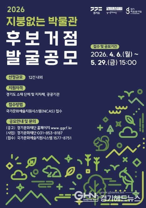 경기헤드뉴스 성미연 기자 | 경기도와 경기문화재단은 대표적인 경기도 지역문화 브랜드인 ‘지붕없는 박물관’ 사업의 지속 가능한 운영 기반을 마련하고, 지역의 잠재적 문화 자산의 발굴과 활용을 위해 ‘2026년 지붕없는 박물관 후보거점 발굴 공모’를 추진한다.