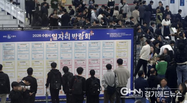경기헤드뉴스 권준형 기자 | 수원특례시가 9일 수원컨벤션센터 전시홀에서 개최한 ‘2026 수원시 일자리박람회’에 2028명이 찾았다.