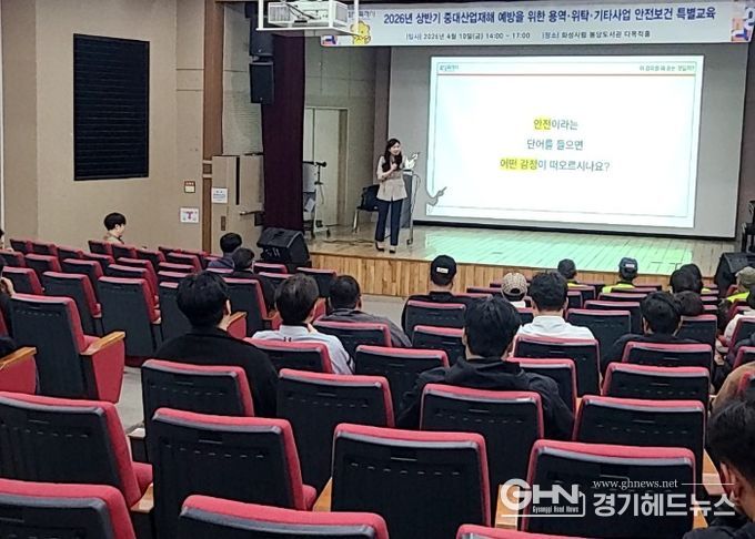 경기헤드뉴스 임수연 기자 | 화성특례시는 10일 용역·위탁 관계부서 담당자와 수급업체 근로자를 대상으로 ‘2026년 상반기 중대산업재해 예방을 위한 용역·위탁·기타사업 안전보건 특별교육’을 실시했다.