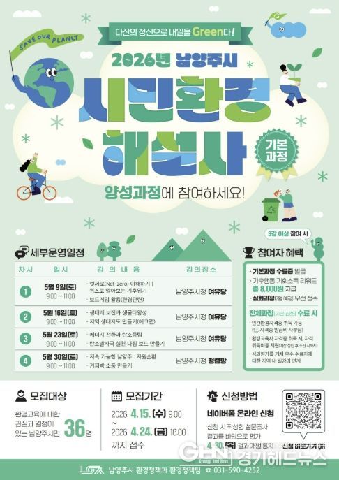 경기헤드뉴스 권민성 기자 | 남양주시는 오는 24일까지 시민이 직접 기후위기와 생태환경을 배우고 이를 지역사회와 나누는 ‘2026년 남양주시 시민환경해설사 기본과정’ 참여자를 모집한다고 15일 밝혔다.