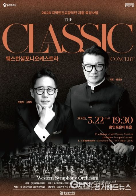 경기헤드뉴스 성미연 기자 | 용인문화재단은 오는 5월 22일 오후 7시 30분, 용인포은아트홀에서 기획공연 '콘서트 'The 클래식''을 개최한다. 이번 공연은 ‘2026년 지역민간교향악단 지원육성사업’의 일환으로 진행되며, 세대를 아우르는 클래식 명곡들을 통해 시민들에게 클래식의 매력을 가까이에서 느낄 수 있도록 마련됐다.