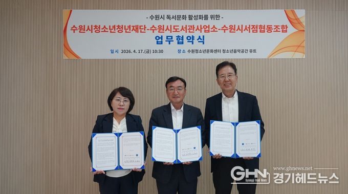 경기헤드뉴스 권준형 기자 | 수원시청소년청년재단은 수원시도서관사업소, 수원시서점협동조합과 4월 17일 수원청소년문화센터에서 수원시 독서문화 활성화를 위한 업무협약을 체결했다.