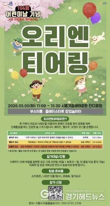 경기헤드뉴스 임채헌 기자 | 시흥시는 제104회 어린이날을 맞아 5월 5일 갯골생태공원 잔디광장에서 아동과 가족이 함께 즐길 수 있는 ‘5월 플레이스타트 팝업놀이터’를 운영한다. 이번 행사는 시흥시 어린이날 기념행사의 하나로 마련돼 행사장을 찾은 가족들에게 다채로운 프로그램으로 즐거움을 선사할 예정이다.